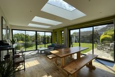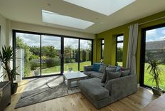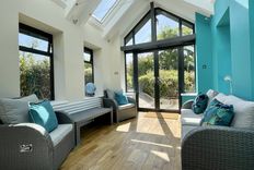From the kitchen, is a door which leads into a large sitting room with seating for the whole family to watch TV or play a game, after enjoying a day out exploring all this stunning area has to offer. From the sitting area, there are two steps up to a useful area with a table and chairs, providing a workspace, and this area leads onto the new entrance at the front of the property, which is a bright sun room, with additional seating. The sitting room has large sliding doors which open on to the patio and large garden.