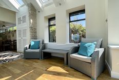On entering through the door at the side of the bungalow, you will find a useful utility area, which has a washing machine, sink and ample storage for those sandy shoes. From here a door leads into the beautiful new orangery which has large windows, and doors opening onto the garden. There is a wonderful large hand crafted dining table, with ample seating for the whole family to enjoy meals together, plus there is a corner sofa, providing a comfy space to relax, play board games or watch the TV, and enjoy the unrestricted views over the beautiful large garden.