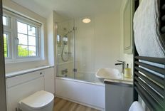 The well-equipped kitchen has a dishwasher, large fridge with separate freezer, electric oven/hob, microwave and washing machine. There is also a W.C. on the ground floor.