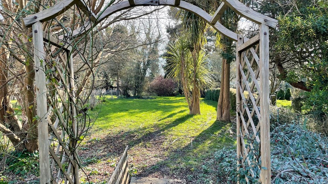 Large lawned garden with access to National Trust Fields